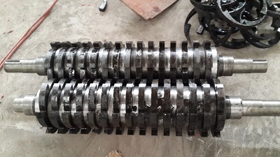 一、采用雙軸或者是單軸低速轉(zhuǎn)動(dòng),利用刀盤進(jìn)行切、割、撕、拉連接渦輪蝸桿減速電機(jī),直接安裝在主動(dòng)軸上,通過減速機(jī)變速傳至從動(dòng)軸,是主動(dòng)軸上的動(dòng)刀與機(jī)殼上的靜止刀盤形成相對(duì)運(yùn)動(dòng)。主軸上的螺旋齒刀盤交錯(cuò)排列,使物料進(jìn)入后,同時(shí)受到擠、撕、剪的作用,從而使物料破碎。二. 利用高速旋轉(zhuǎn)的葉輪將長(zhǎng)的金屬屑絞碎折斷,主軸上連接轉(zhuǎn)盤,幾個(gè)轉(zhuǎn)盤四周裝有錳鋼材質(zhì)錘頭,經(jīng)過高速旋裝式捶打,直到形成小顆粒狀,通過預(yù)訂的篩網(wǎng)流出,篩網(wǎng)孔可根據(jù)用戶要求而選定。